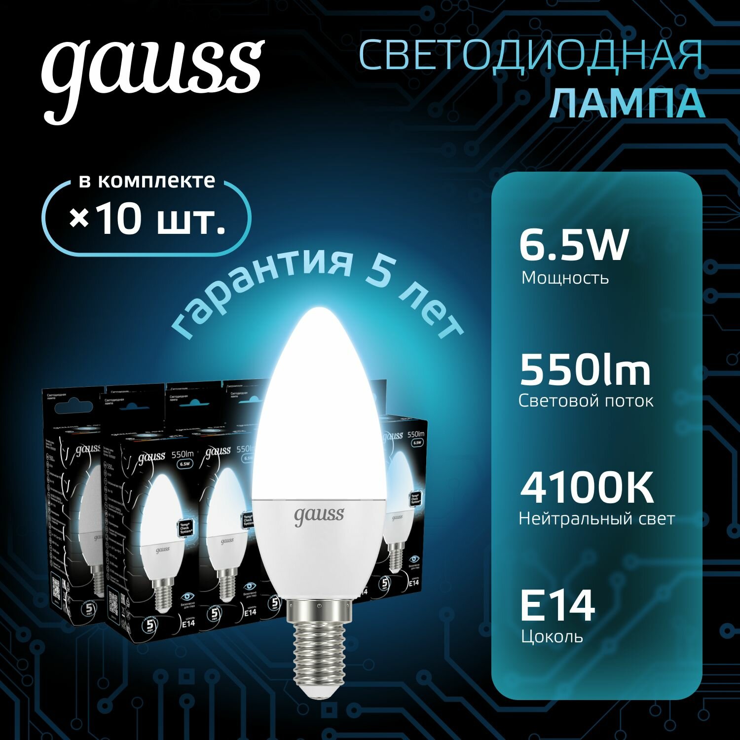 Упаковка ламп LED GAUSS E14, свеча, 6.5Вт, 10 шт. [103101207]