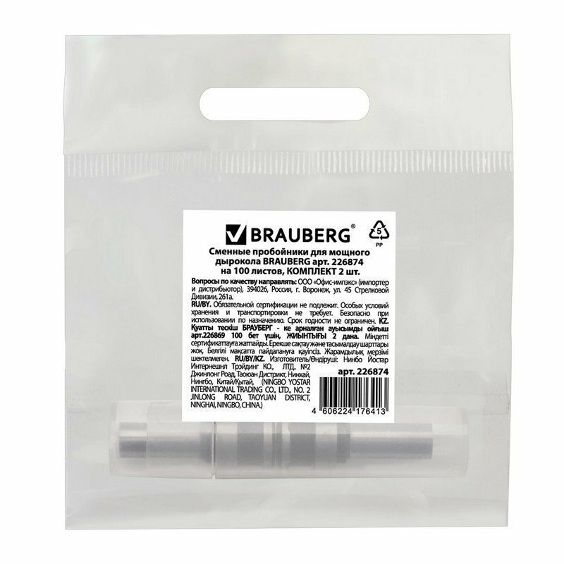 Сменные пробойники для мощного дырокола BRAUBERG "Riff", на 100 листов, комплект 2 шт 226874 информация: