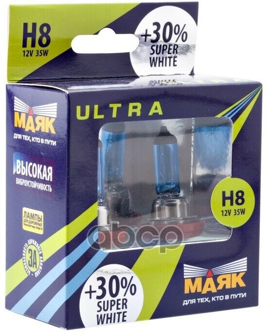 Лампа 12 В H8 35 Вт Ultra Super White +30% 2 шт. Маяк маяк 82820SW+30 | цена за 1 шт