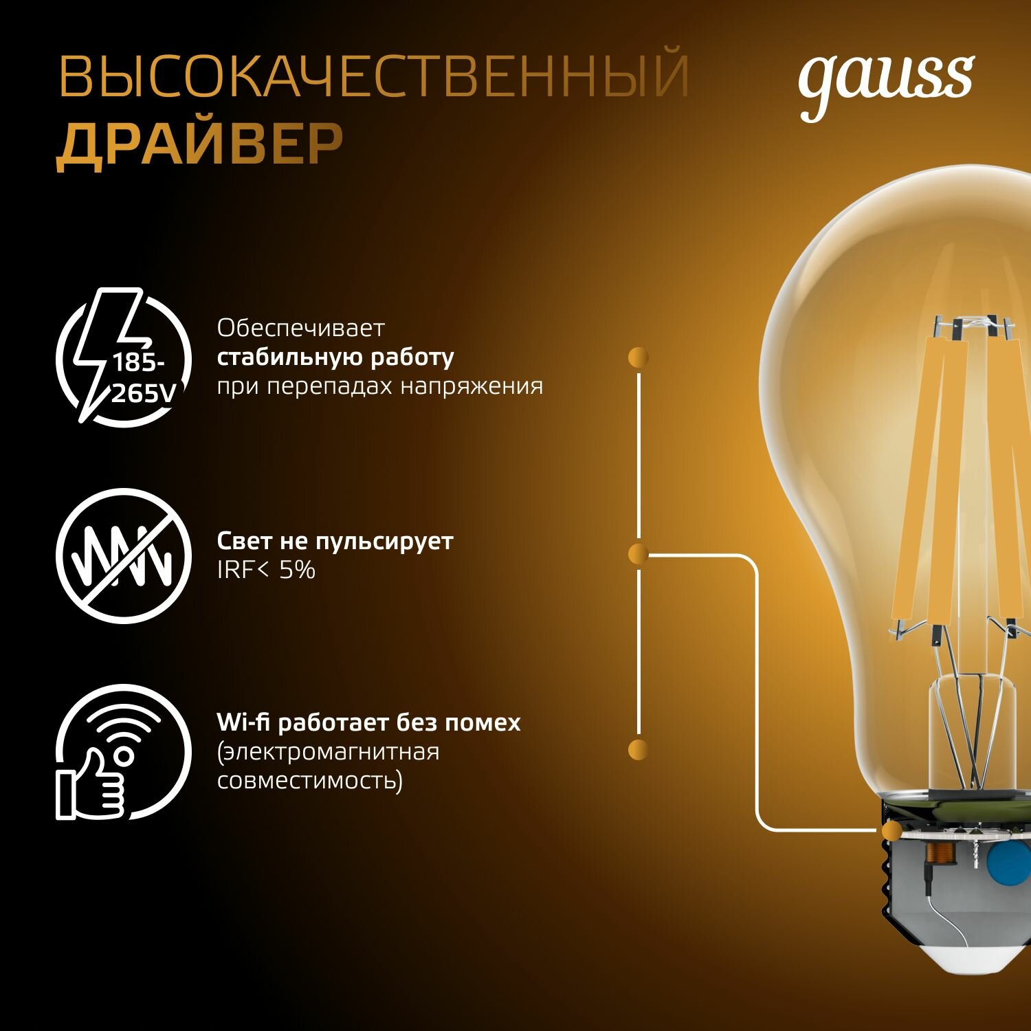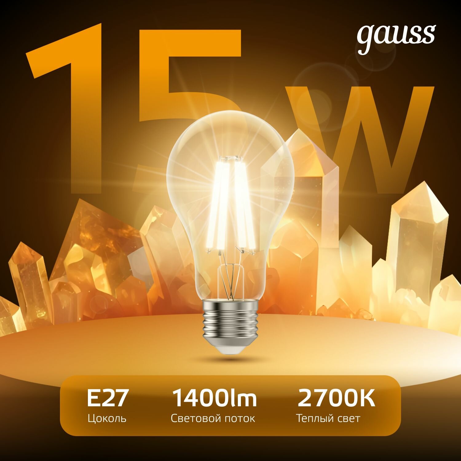 Лампа Gauss Filament А60 15W 1400lm 2700К Е27 LED, упаковка 10 шт.