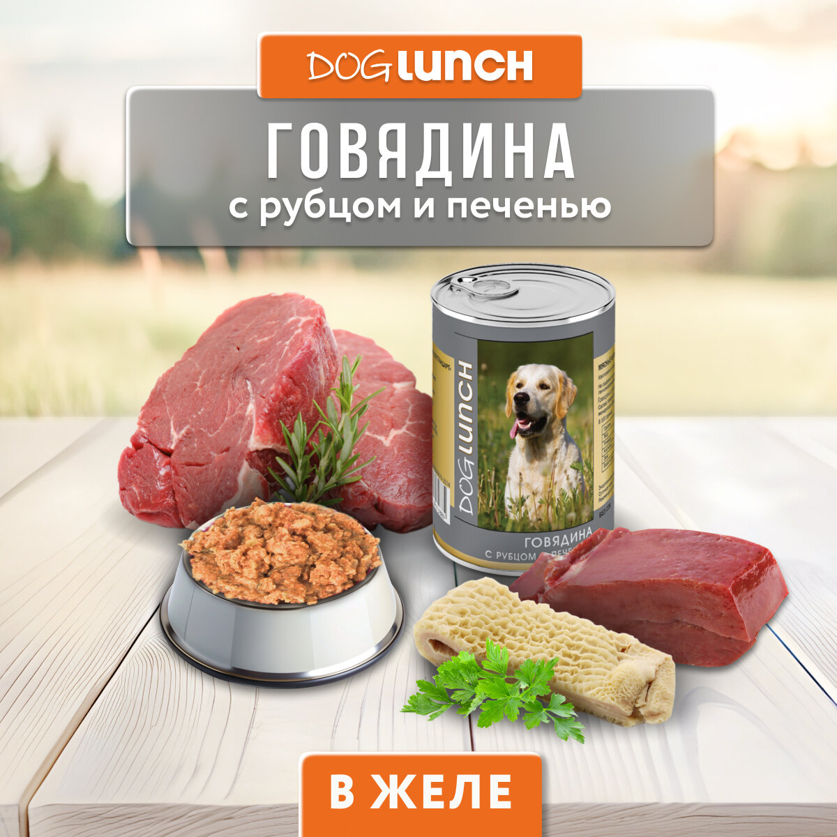 DOG LUNCH для взрослых собак с говядиной, рубцом и печенью в желе (410 гр х 12 шт) 1 479 ₽