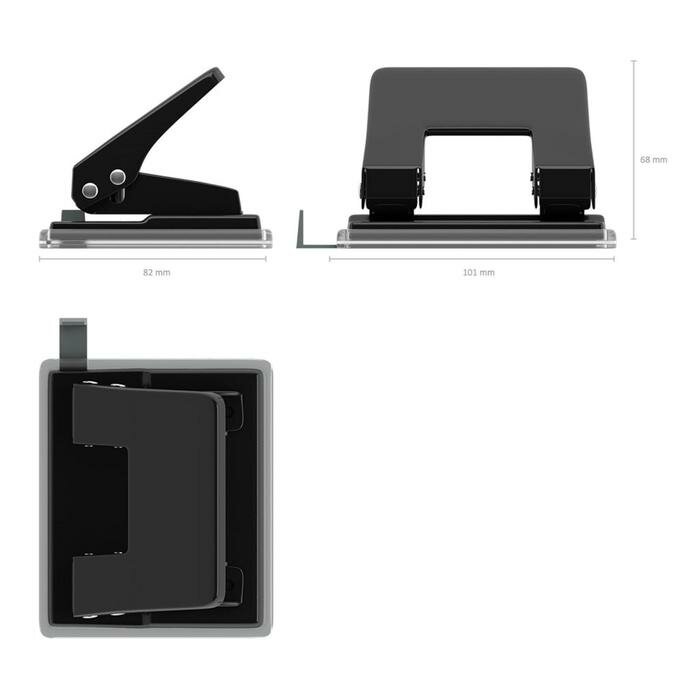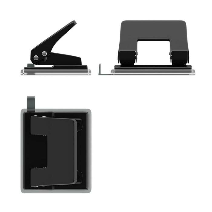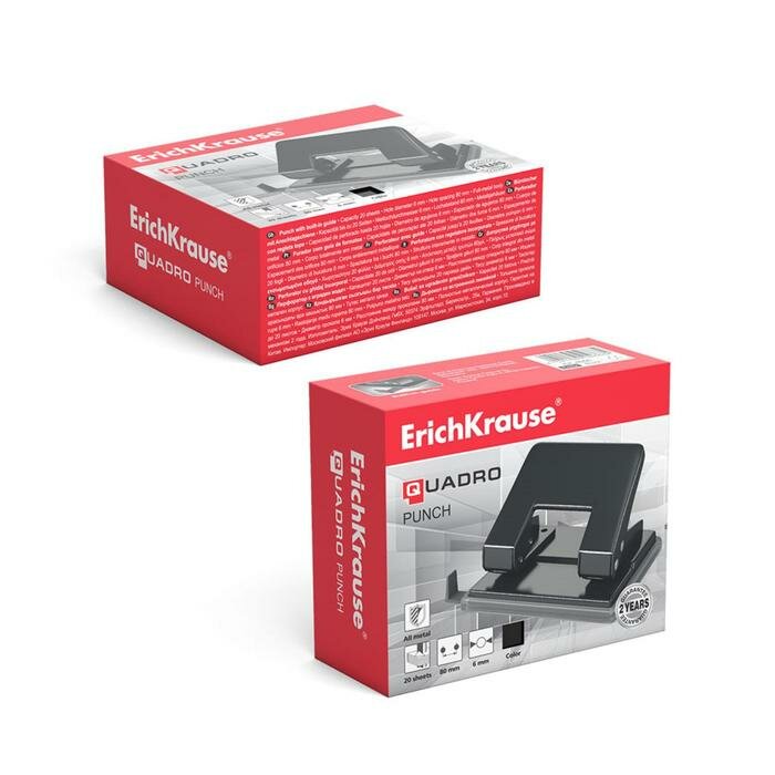 Дырокол ErichKrause Quadro, до 20 листов, диаметр прокола 6 мм, расстояние между проколами 80 мм, черный информация:
