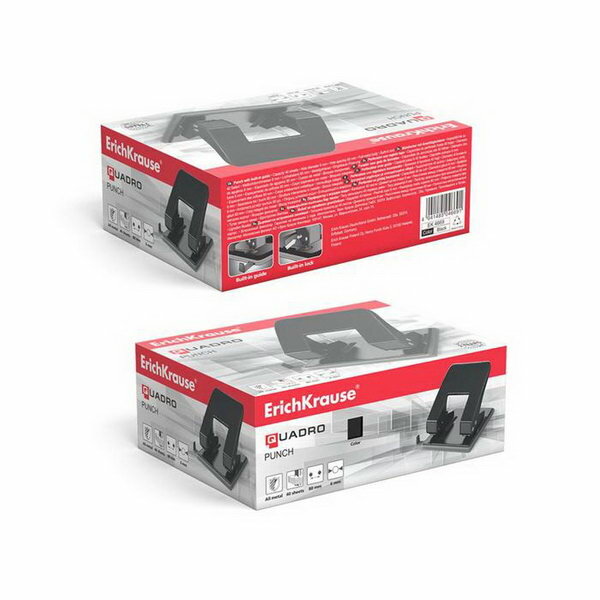 Дырокол металлический ERICH KRAUSE Quadro, до 40 листов, черный, 4669