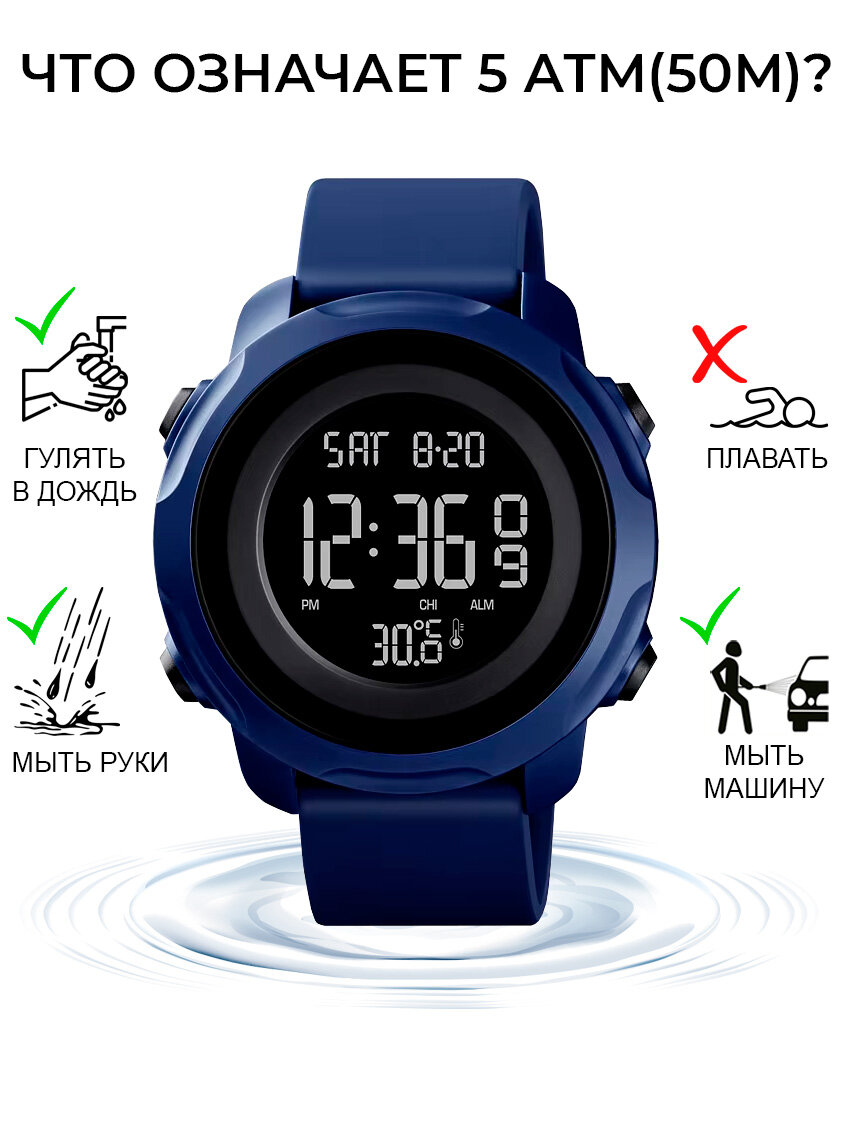 Часы наручные мужские электронные спортивные SKMEI водонепроницаемые, с секундомером и измерением температуры информация: