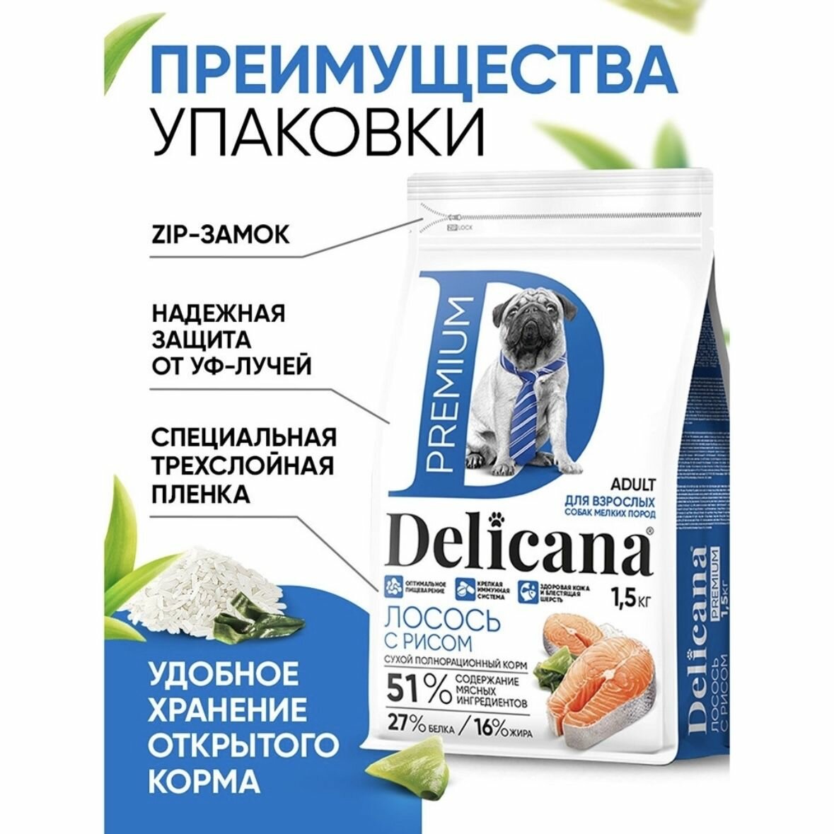 DELICANA Premium Сухой корм для собак мелких пород, лосось и рис, 1,5 кг информация: