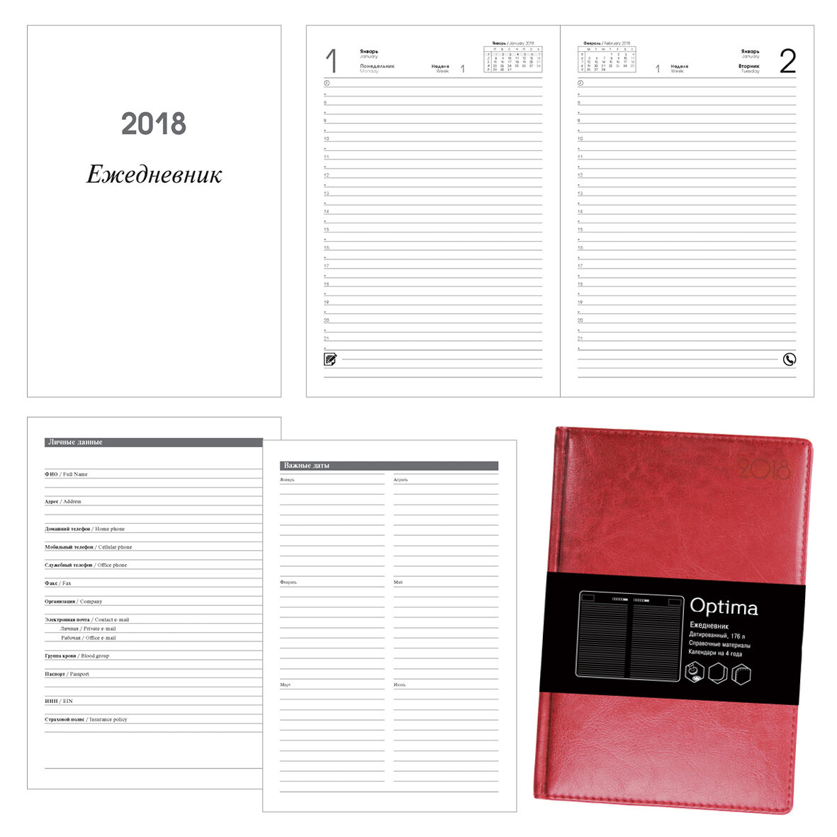 Ежедневник искусств.кожа (OPTIMA) Optima. Бордо (А5 недат. 136л) информация: