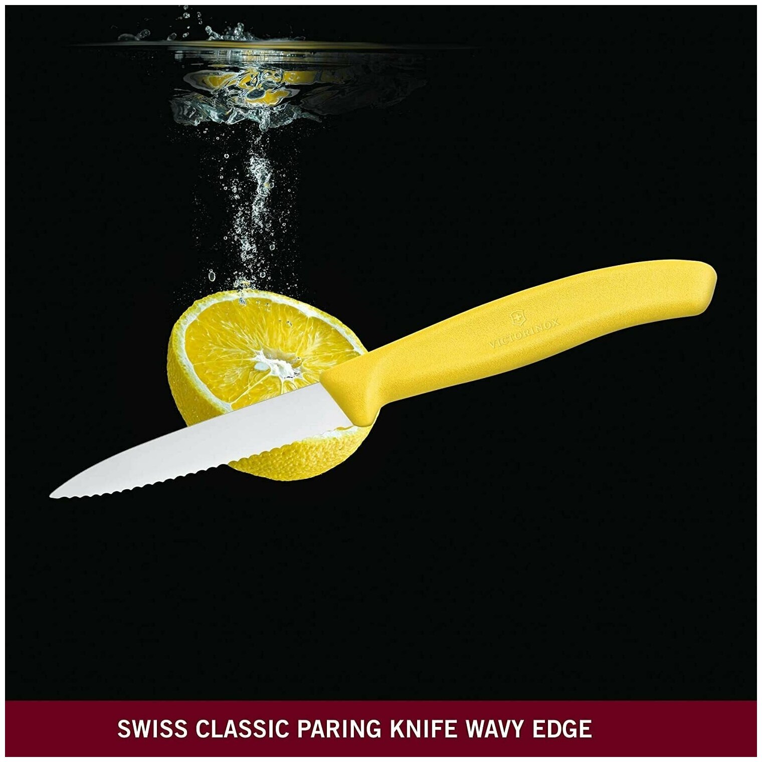 Нож для овощей VICTORINOX Swiss Classic, лезвие 8 см с волнистой заточкой и заострённым кончиком, черный 6.7633