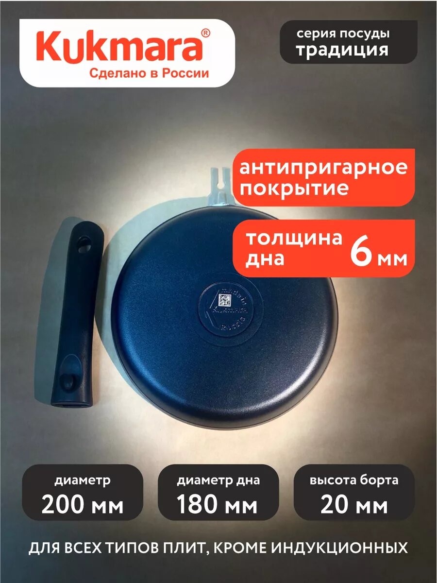 Сковорода антипригарная литая блинная 20см со съемной ручкой Традиция ТМ KUKMARA 1 418 ₽