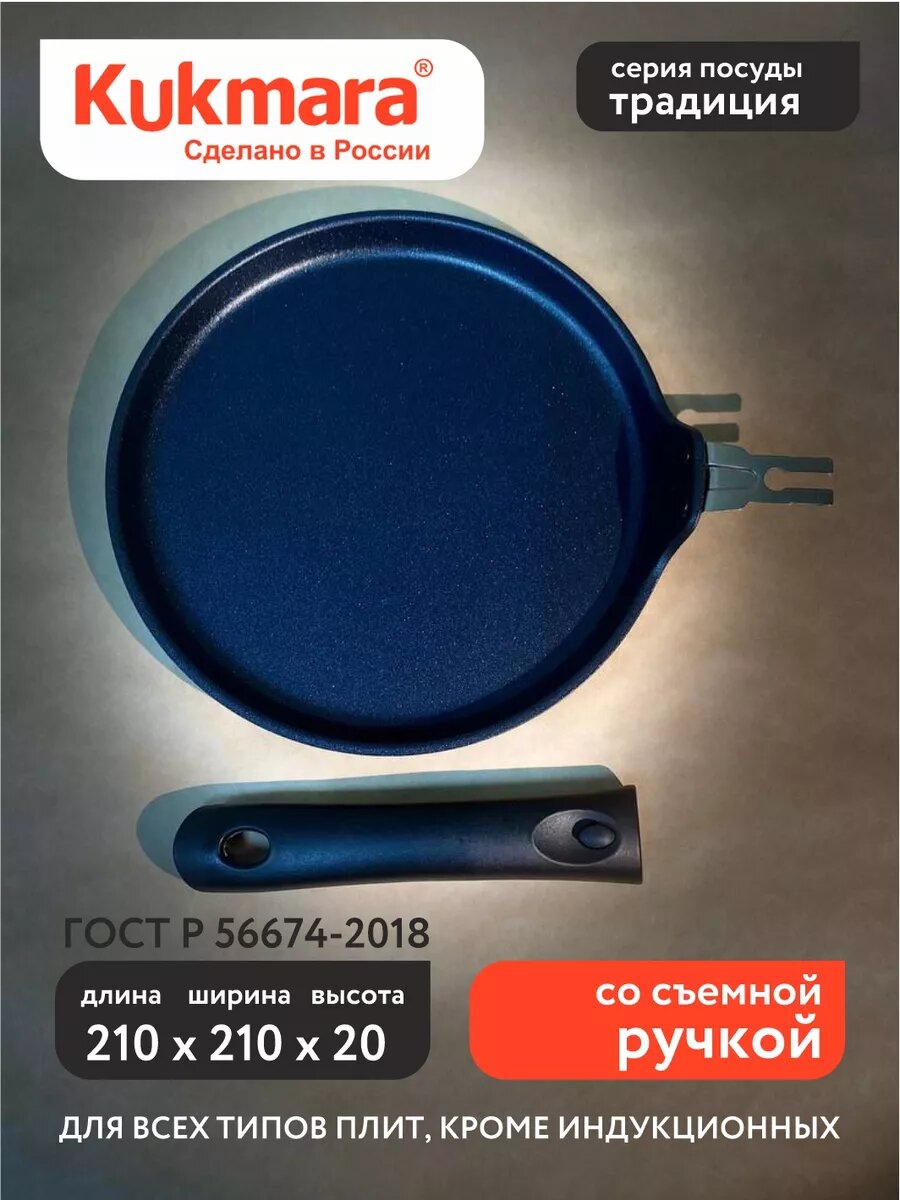 Сковорода блинная Kukmara d220 со съемной ручкой антипригарное покрытие - сб220-1а 2 187 ₽