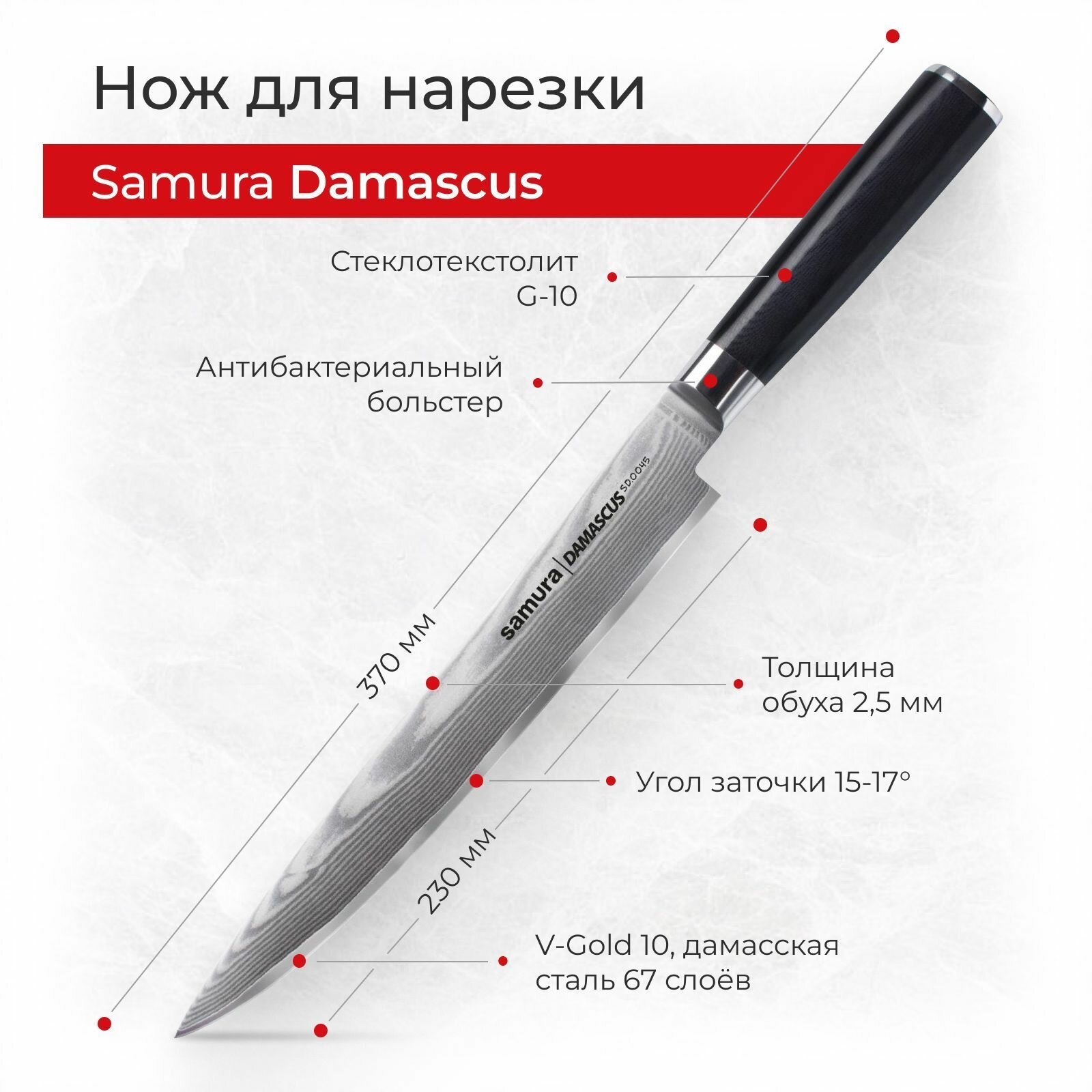 10 цен на Нож кухонный поварской Samura Damascus слайсер для нарезки профессиональный SD-0045/G-10