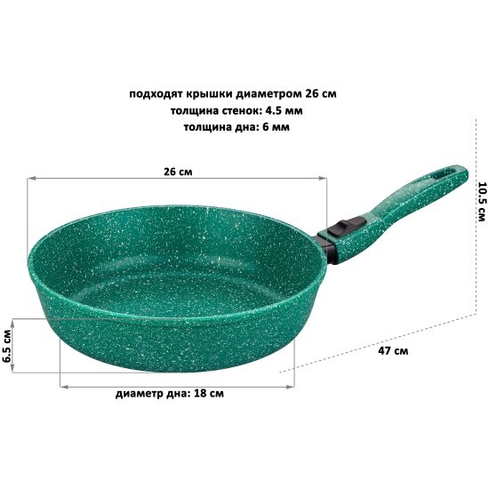 Сковорода глубокая Elan Gallery Гармония вкуса "Изумруд", со съёмной ручкой, 26 см информация: