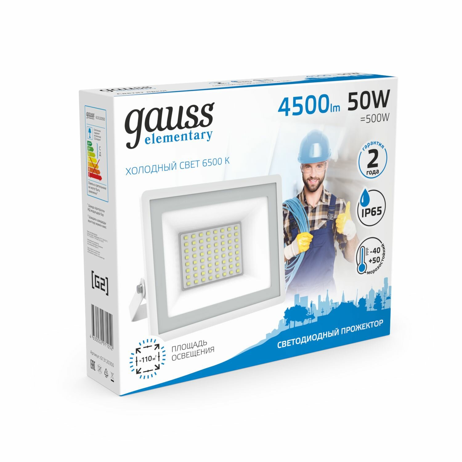 10 цен на Прожектор светодиодный 50W холодный свет 6500К 220V IP65 белый Gauss Elementary