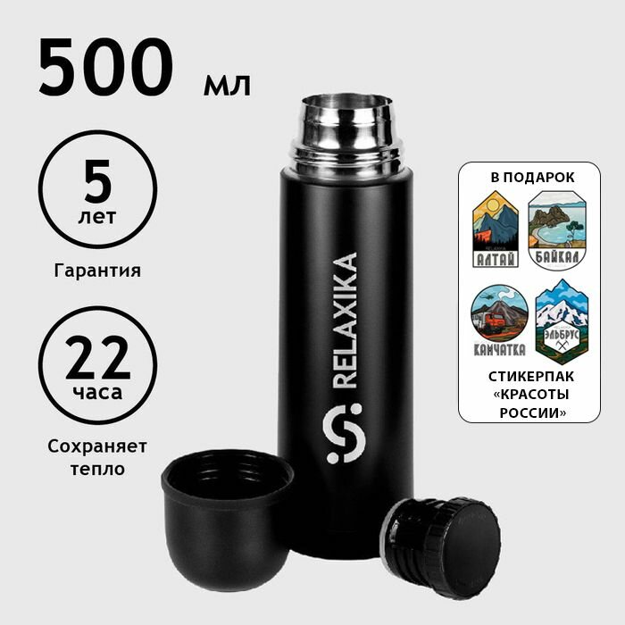 Термос Relaxika R101.500.2 (0,5 литра), черный (стикерпак "Красоты России") R101.500.2 1 421 ₽