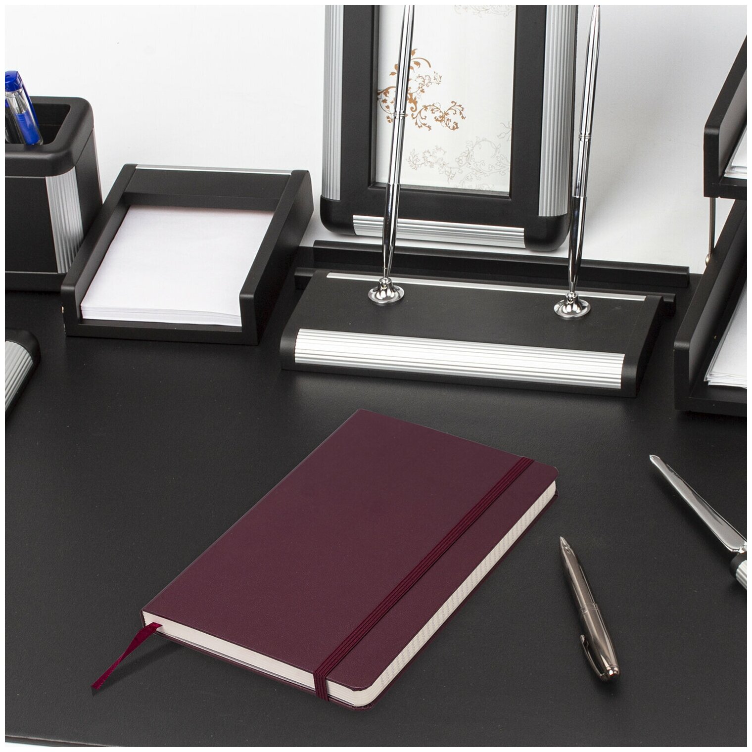 Комплект 8 шт, Блокнот в клетку с резинкой А5 (148x218 мм), 80 л, под кожу черный BRAUBERG "Metropolis Ultra", 111021 5 119 ₽