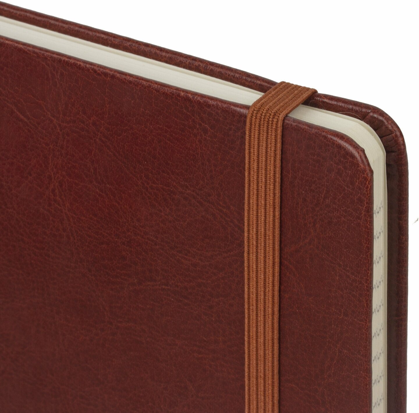 Бизнес-блокнот, записная книжка, тетрадь А5 (148x218 мм), Brauberg Metropolis Special, под кожу, 80 л., резинка, клетка, коричневый, 111578