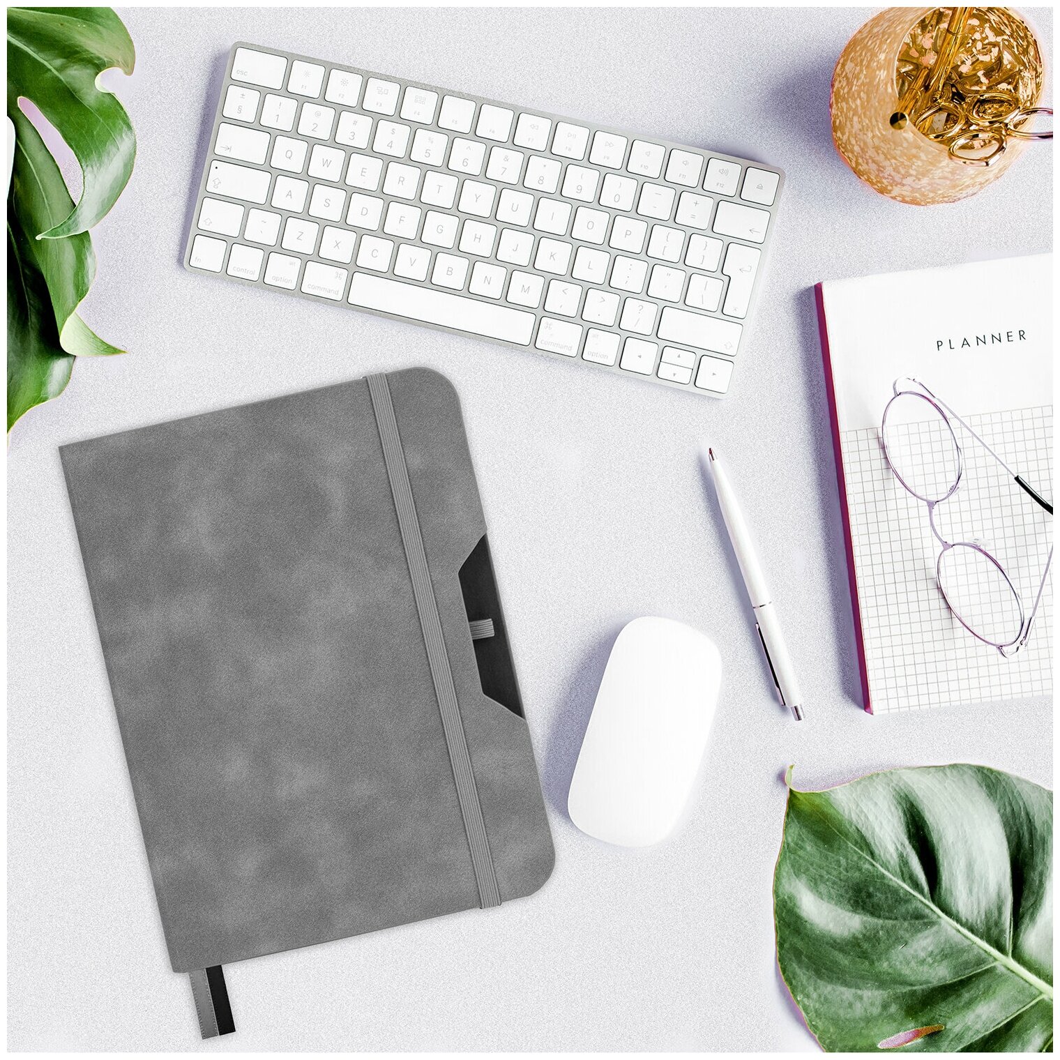 10 цен на Бизнес-блокнот / записная книжка мужской / женский А5 (148х218 мм), Brauberg Note, под кожу софт-тач, с резинкой, 80 листов, клетка, серый