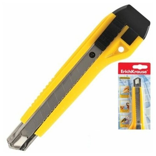 Нож канцелярский Erich Krause 19149 Universal ширина лезвия 18мм выдвижное лезвие фиксатор пластик желтый блистер