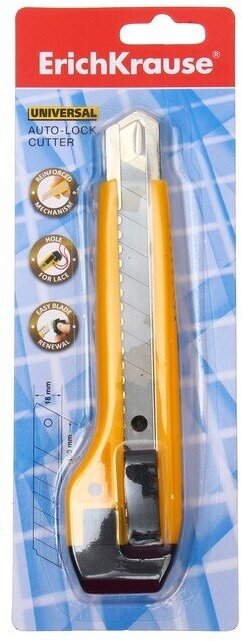 Нож канцелярский Erich Krause UNIVERSAL auto-lock, 18 мм, желтый