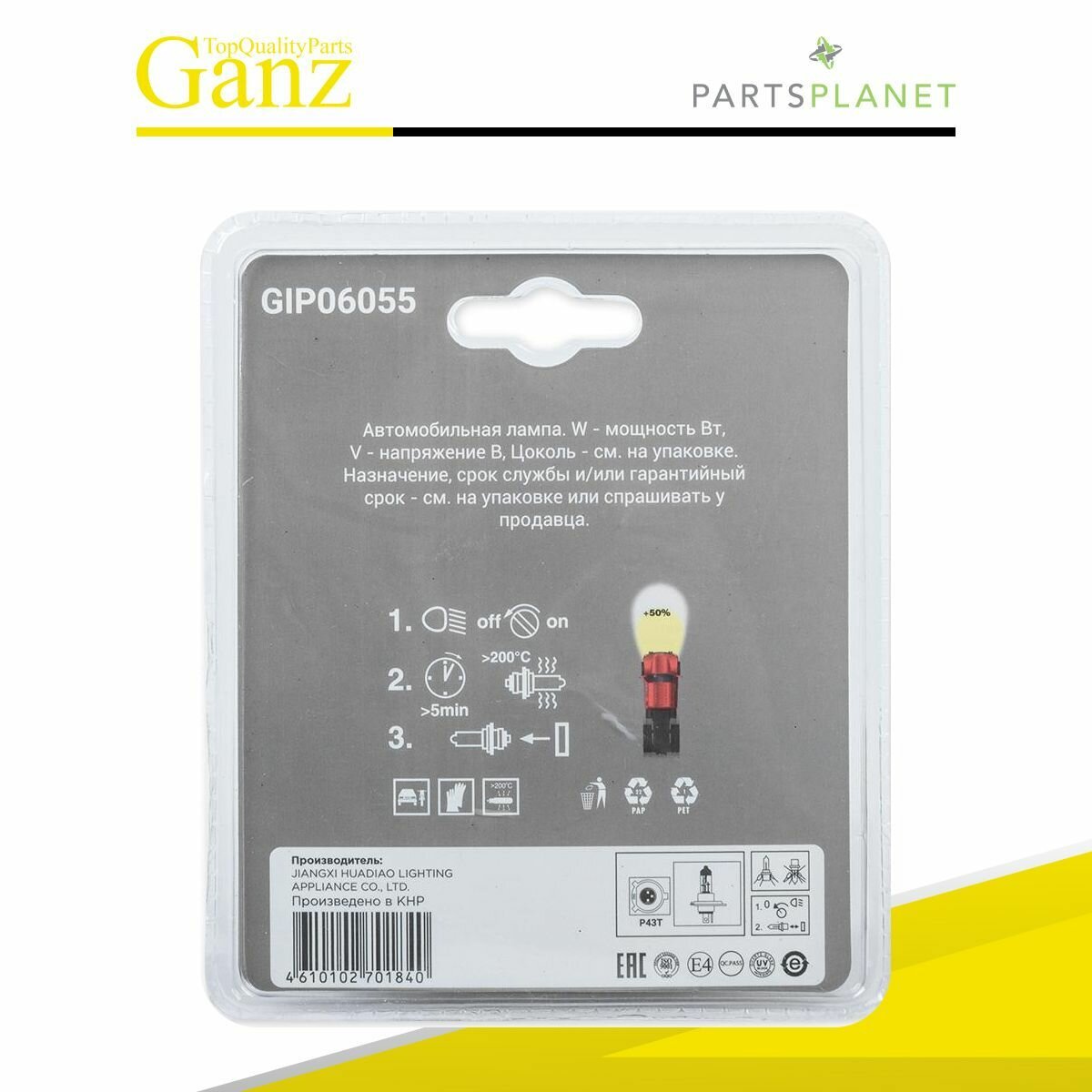 Лампа 12v H1 55w P14,5s Ganz 1 Шт. Картон Gip06001 GANZ арт. GIP06001