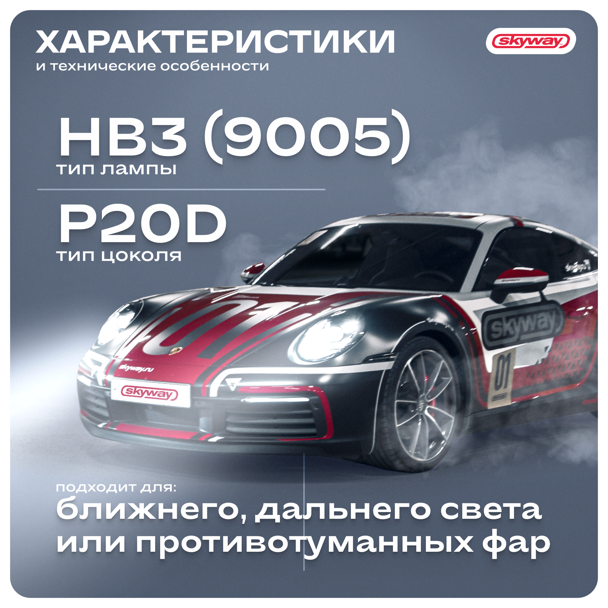 Лампа автомобильная Skyway Спутник HB3/9005, 12 В, 65 Вт, P20D, 1 шт S09101054 4538043 информация: