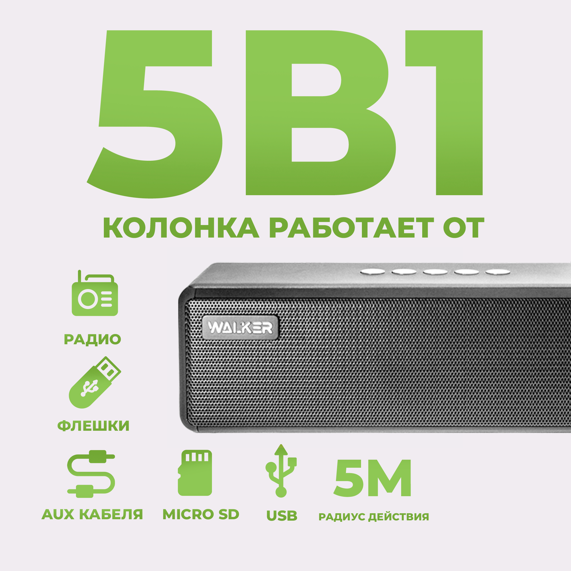 Беспроводная портативная колонка Bluetooth, WALKER, WSP-100, музыкальная переносная акустическая система блютуз для компьютера и телевизора, черная