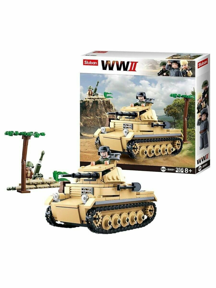 10 цен на Конструктор SLUBAN, серия WWII - Легкий немецкий танк PzKpfw II (Панцзер 2) 356 деталей, M38-B0691