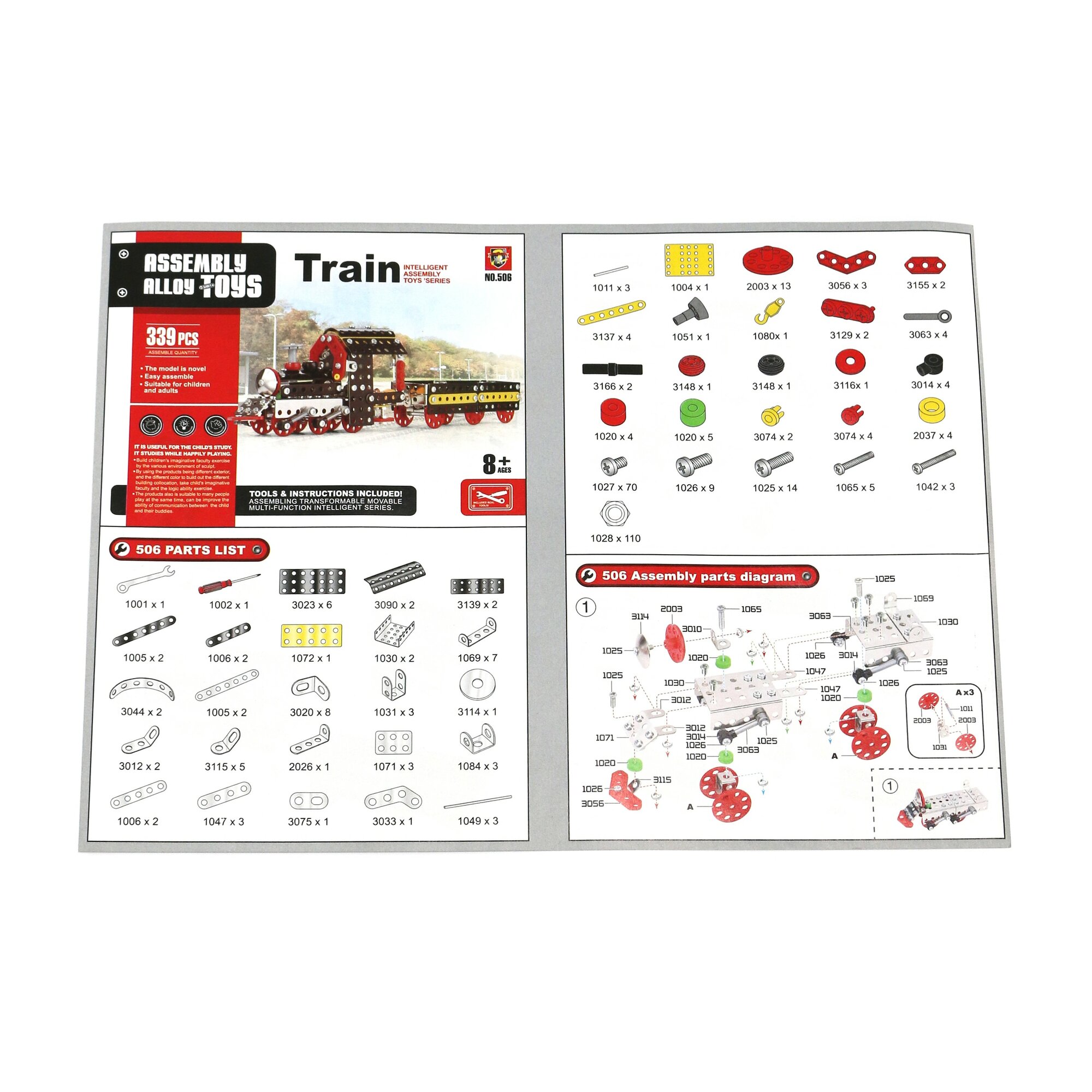 Конструктор металлический "Поезд" 339 деталей с отверткой и гаечным ключом 506_1 информация: