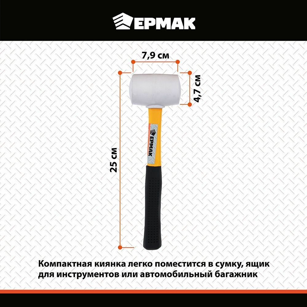 Киянка ермак, белая резина, фибергласовая обрезиненная рукоятка 225гр информация: