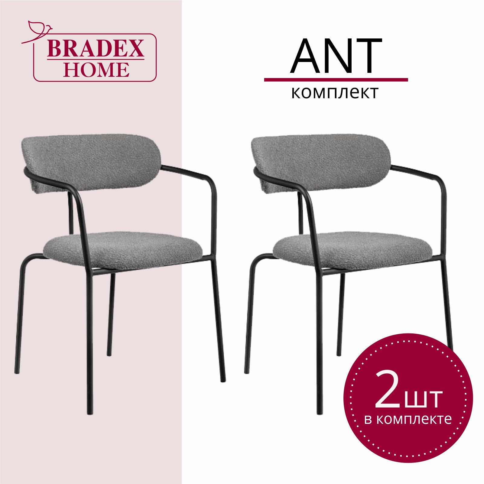 Стулья для кухни 2 шт комплект Ant букле серый обеденные мягкие со спинкой и с подлокотниками, офисные лофт информация: