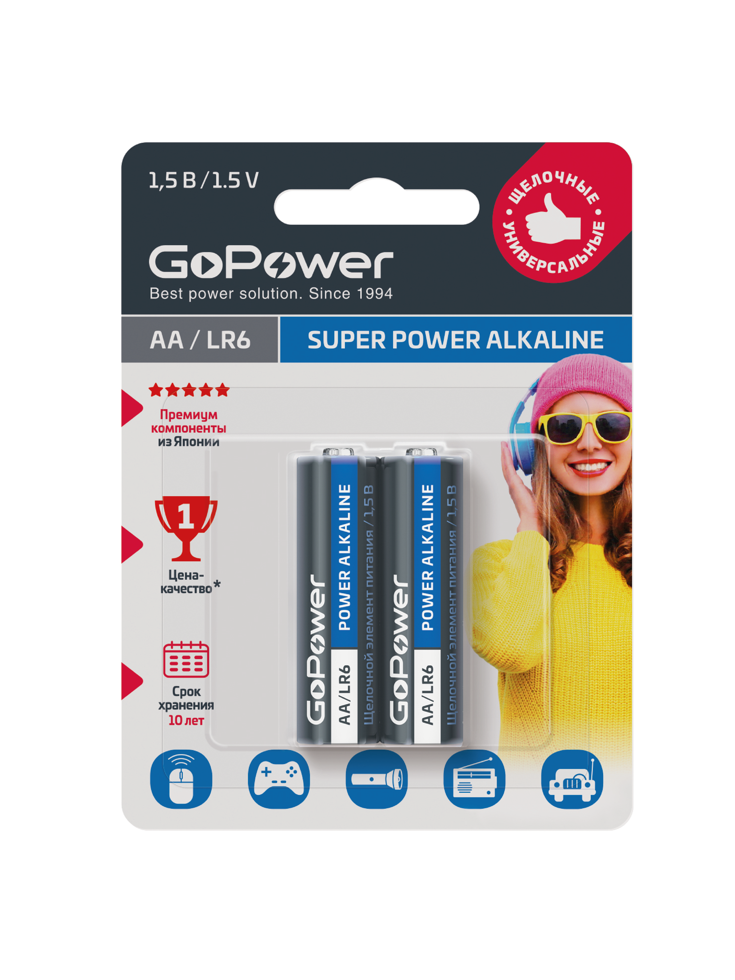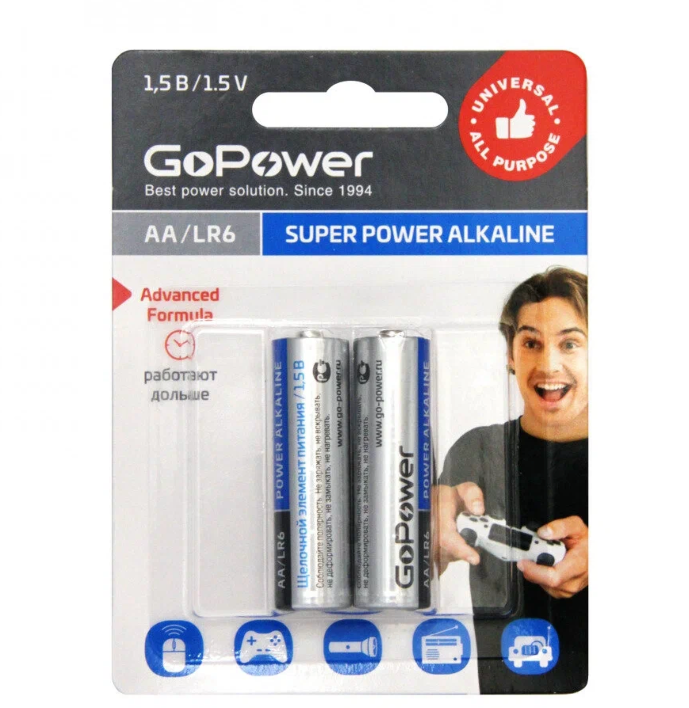00-00019861 Super Power Alkaline Элемент питания AA/LR6 щелочной 1.5В, 2шт, GoPower 270 ₽