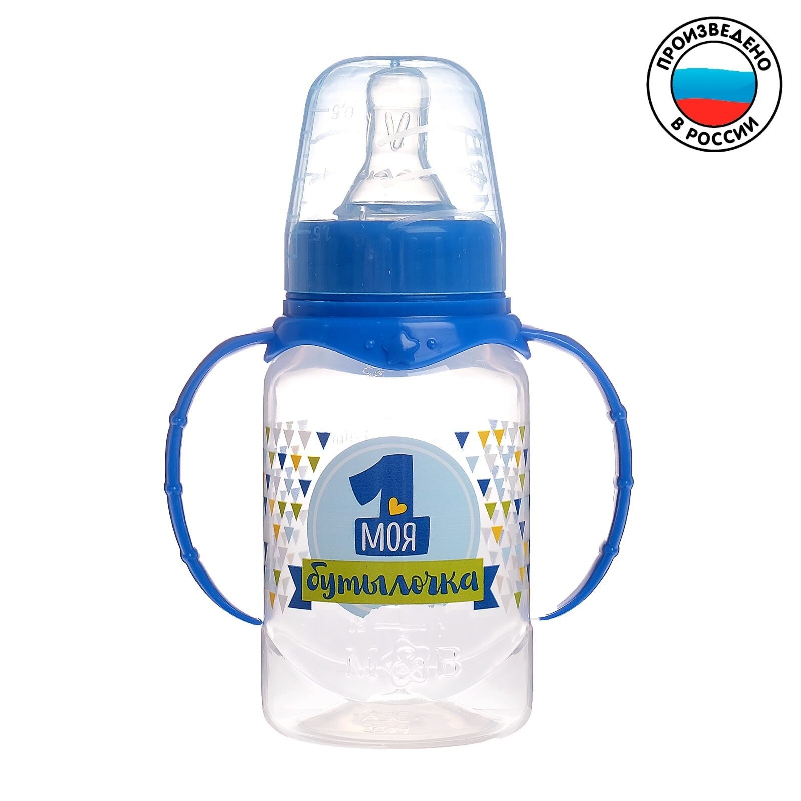 Бутылочка для кормления с ручками «Моя первая бутылочка», классическое горло, 150 мл., от 0 мес., цвет синий