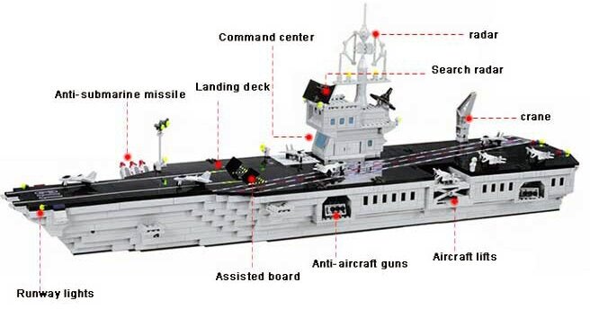 | Комплектация | конструктор, истребители, моторная лодка, подвижные пушки, антенны навигации, фигурки человечков |