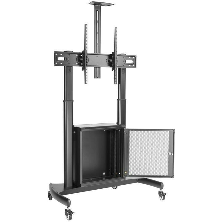 Стойка Digis DSM-P2106CB мобильная для ТВ 55"-100" до 100 кг с рэком для оборудования, VESA до 1000x600мм, наклон -10°/+5°, изменение высоты ТВ, полка для камеры (состоит из двух мест)