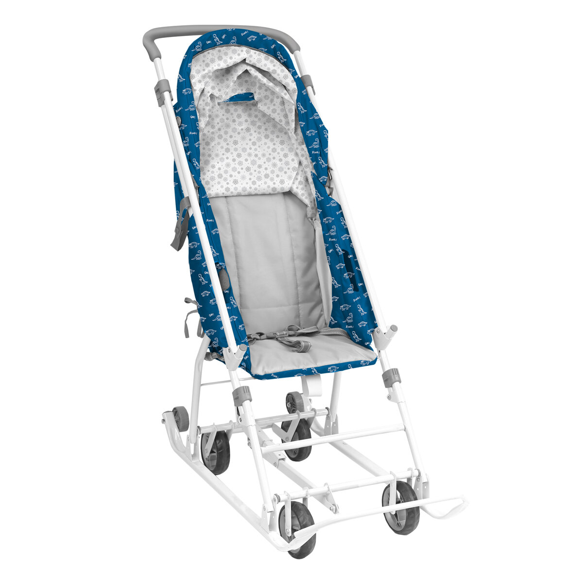Санки-коляска Nika складные детские "Наши Детки 3-1К", принт голубой с облачками, перекидная ручка, облегченный каркас Ника с бампером выдвижные колеса, возраст 1+ / 1 шт