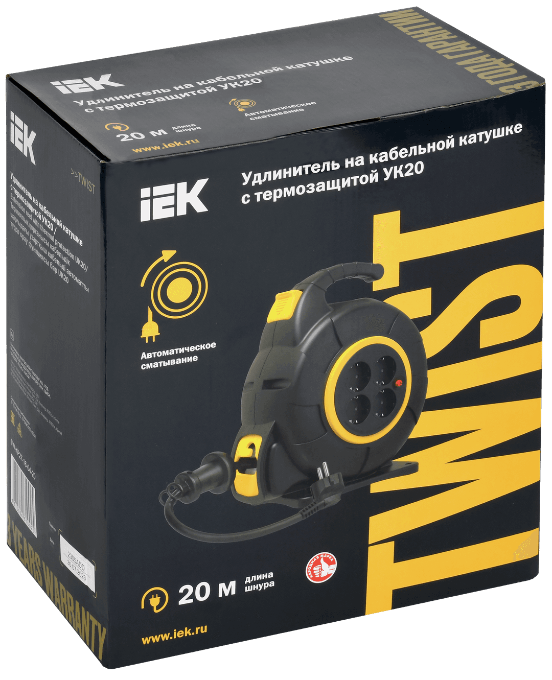 TWIST Катушка 4 места УК20 2P+PE/20м 3х1,5мм2 автосмотка IEK (TW-KP27-16-04-20) информация:
