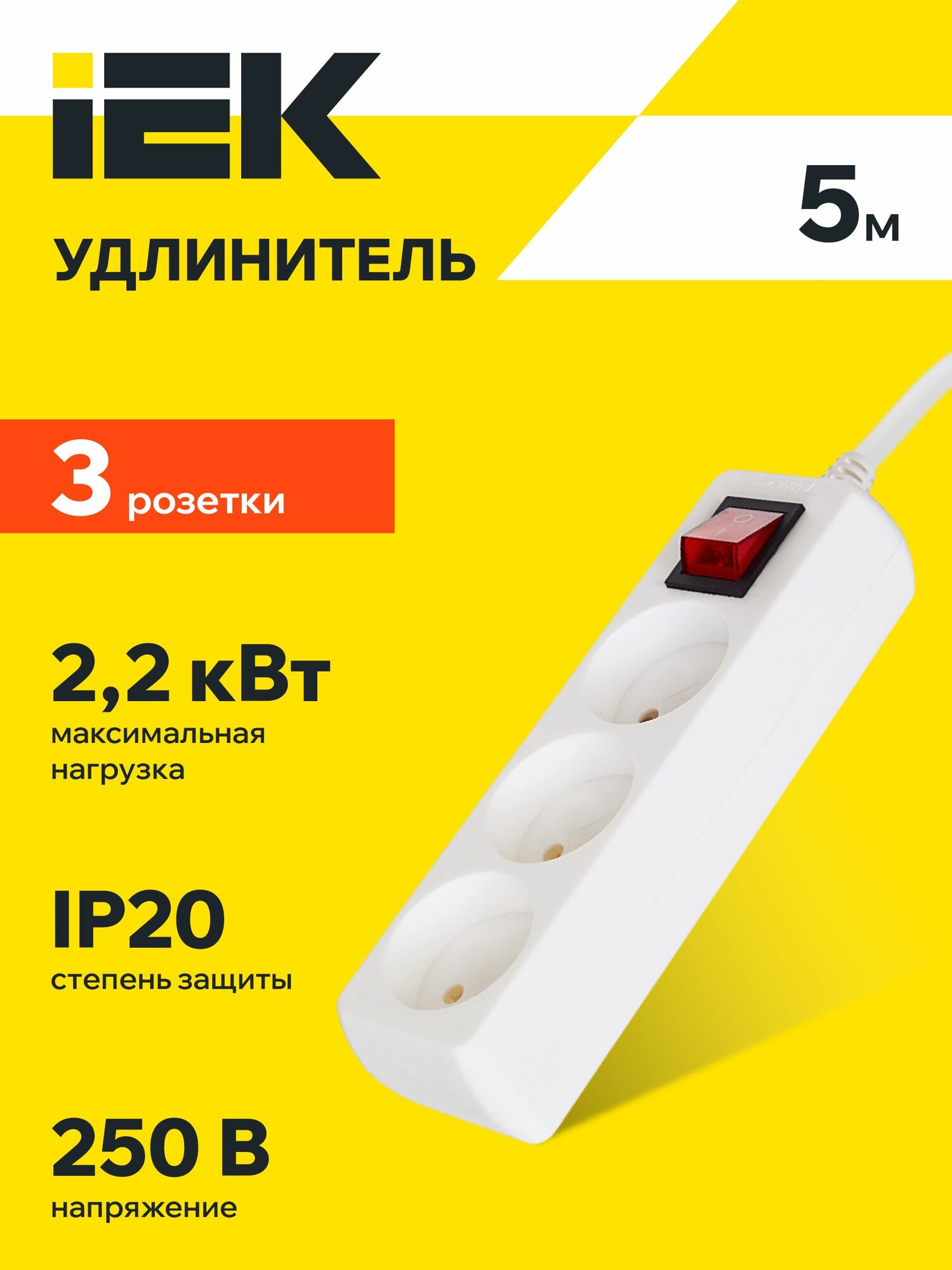 IEK Удлинитель У3К-выкл. 3 места 2Р/5метров 2х0.75мм2 10А/250
