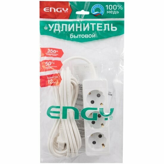 Отзывы на Удлинитель Engy Гранд 5 м. 3 розетки с заземлением (ПВС 3х0,75), белый