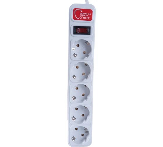 Отзывы на Удлинитель с сетевым фильтром 5х3м 10А ПВС 3х0.75 бел. Союз , 1325