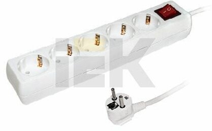 Удлинитель с выключателем iEK 5 розеток с заземлением, 3 x 1 мм, 5 метров