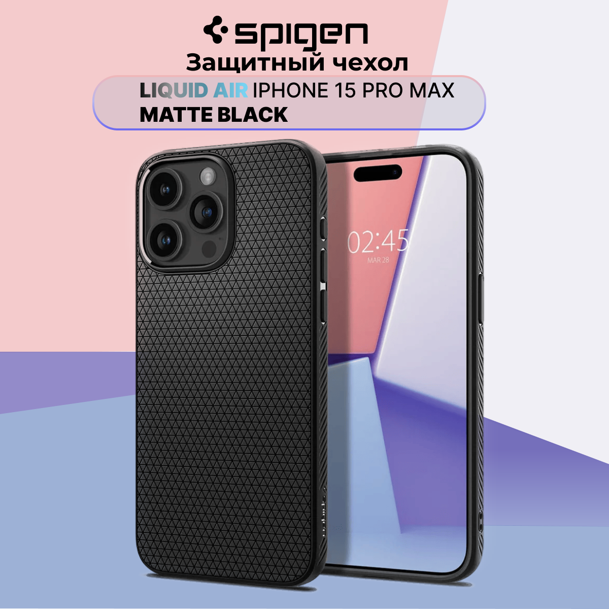 10 цен на Чехол Spigen Liquid Air для Apple iPhone 15 Pro Max, черный