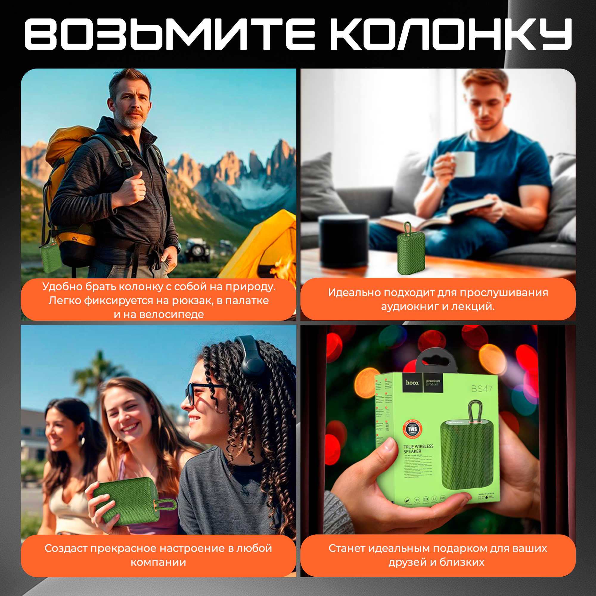 Отзывы на Портативная колонка Hoco "BS47 Uno", Bluetooth 5.0, FM радио, зеленый
