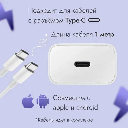 Адаптер для Samsung 25W USB-C + Кабель Type-C (3A), быстрая зарядка