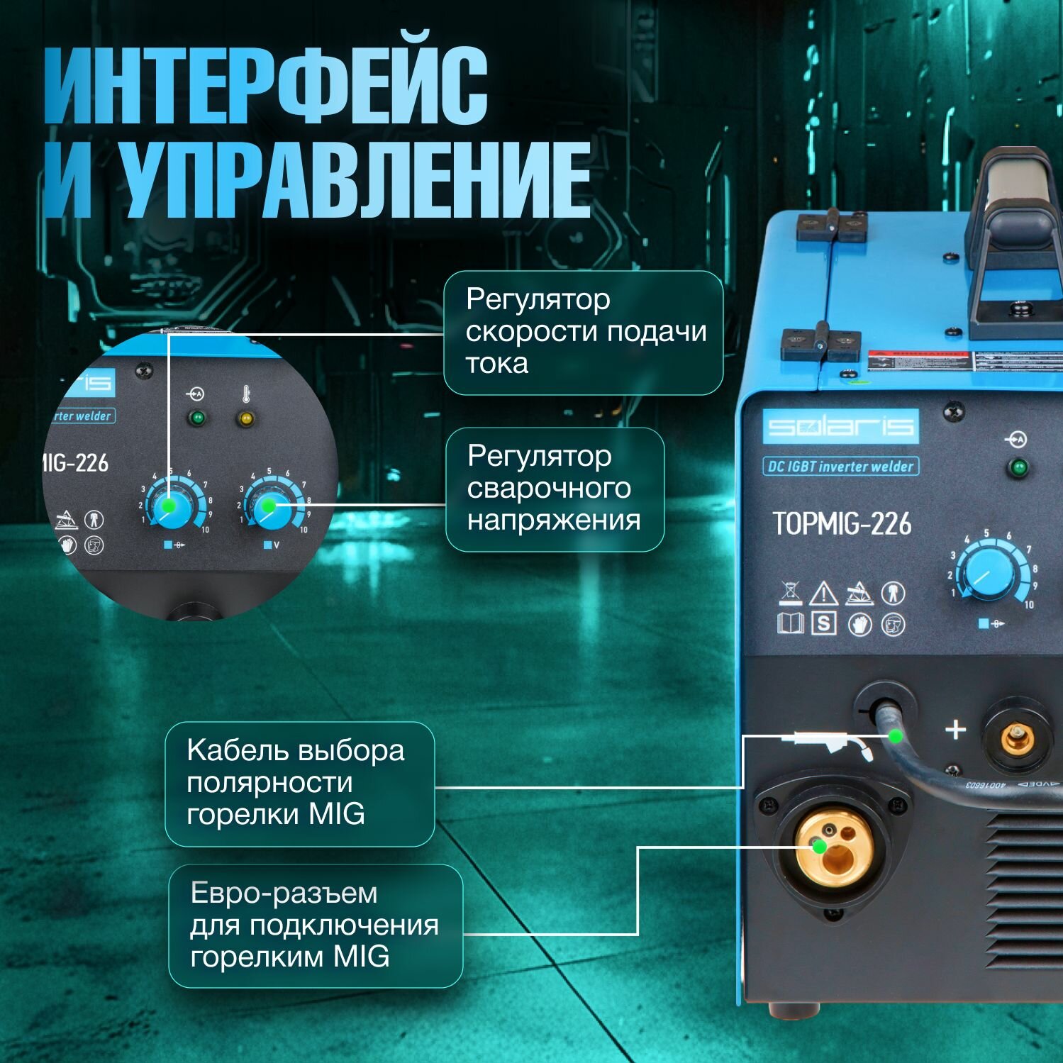 TOPMIG-226 (MIG/MAG/FLUX) горелка 3 метра SOLARIS Сварочный полуавтомат
