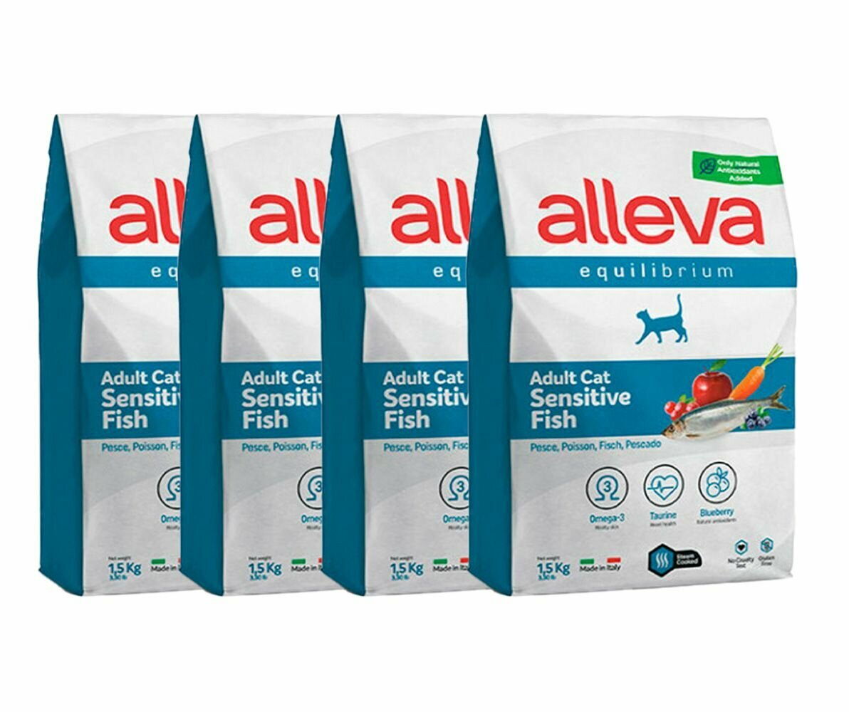 ALLEVA Полнорационный корм SENSITIVE для взрослых кошек с рыбой. 1,5 кг. х 4 шт. информация: