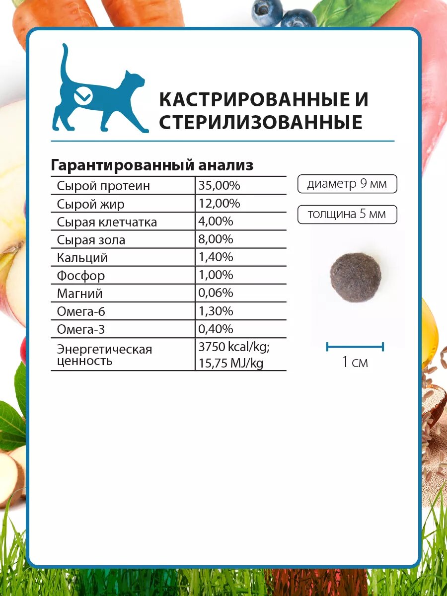 | Особые потребности | для живущих в помещении / для здоровья кожи и блеска шерсти / для стерилизованных/кастрированных / профилактика МКБ |