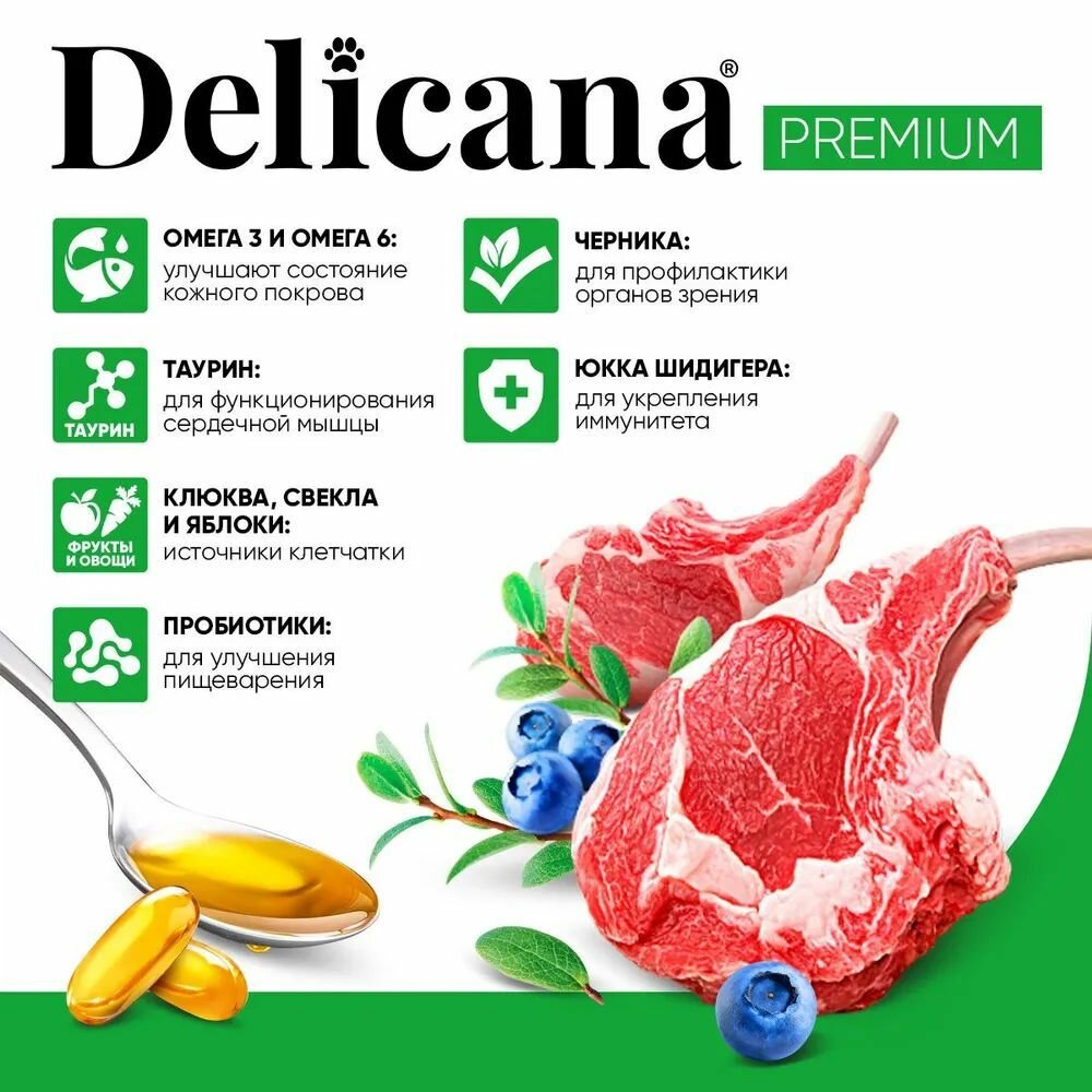 DELICANA Корм сухой для взрослых кошек с ягнёнком, 8 кг информация: