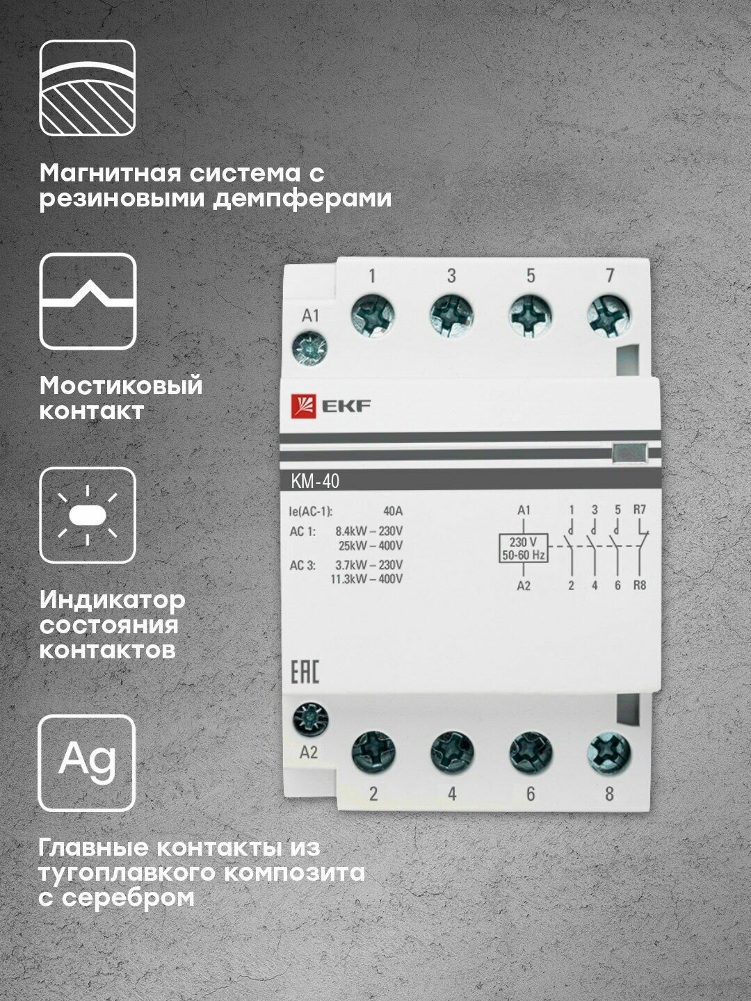 Контактор модульный КМ 40А 3NО-NC (3 мод.) EKF PROxima - 1 шт информация: