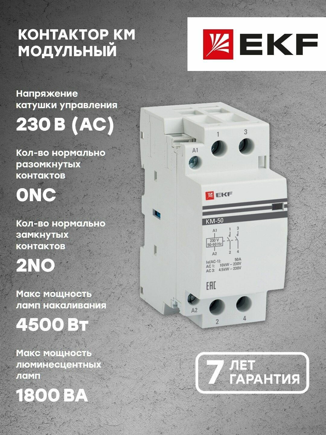 Контактор модульный КМ 50А 2NО (2 мод.) | код. km-2-50-20 | EKF ( 1шт. ) информация:
