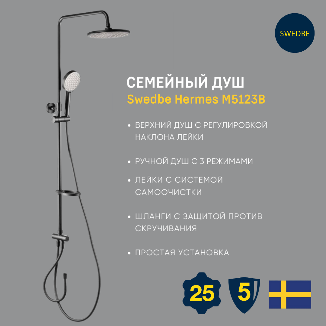 Семейный душ с нижним подключением Swedbe Hermes, цвет: черный 5102B 28 026 ₽