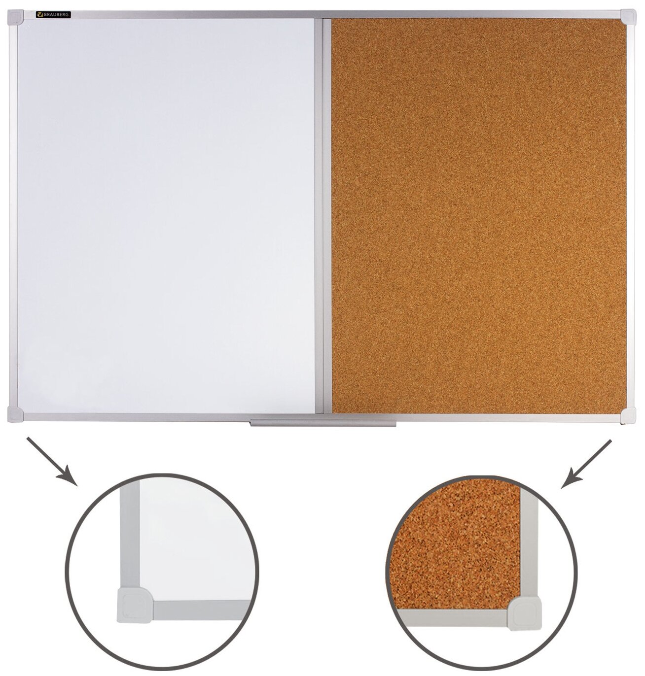 1 Доска комбинированная: магнитно-маркерная, пробковая для объявлений, 60×90 см, россия, BRAUBERG, 236864